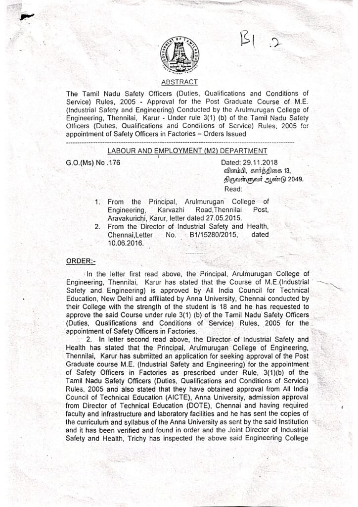 Graduates of the M.E. Industrial Safety Engineering program emerge as industry-ready safety leaders, empowered under Wide G.O. No. 176 dated 29.11.2018, and prepared for rewarding careers as: